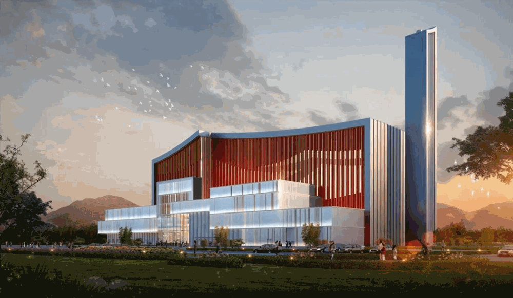 項目選用技術成熟可靠的爐排爐焚燒工藝和先進的煙氣凈化設施,建筑設計通過大尺度建筑體塊的有機組合,塑造充滿能量感的建筑造型,最終實現全廠節能、節水、安全、綠色、美觀的高效運行。